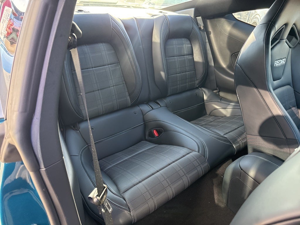 19 Alloy wheels, 1st Row Carpeted Black Floor Mats, 4-Wheel Disc Brakes, ABS brakes, Active Valve Performance Exhaust, Air Conditioning, AM/FM Stereo, Auto High-beam Headlights, Automatic temperature control, B&O Sound System by Bang & Olufsen with 12 Speakers, Black Mirror Caps, Black Seat Belt, Brake assist, Brembo Brake System with Performance Linings, Bumpers: body-color, Compass, Delay-off headlights, Driver door bin, Driver vanity mirror, Dual front impact airbags, Dual front side impact airbags, Electronic Stability Control, Emergency communication system: 911 Assist, Exterior Parking Camera Rear, Four wheel independent suspension, Front anti-roll bar, Front Bucket Seats, Front Center Armrest, Front dual zone A/C, Front reading lights, Fully automatic headlights, GT Performance Package, Illuminated entry, Knee airbag, Leather Shift Knob, Leather steering wheel, Leather-Trimmed Plaid Perforated Climate-Controlled Bucket Seats, Low tire pressure warning, MagneRide Damping System, Mustang FX Package, Occupant sensing airbag, Outside temperature display, Overhead airbag, Overhead console, Painted High Gloss Black/Carbon Black Grille, Panic alarm, Passenger door bin, Passenger vanity mirror, Power door mirrors, Power steering, Power windows, Radio data system, Rain sensing wipers, Rear anti-roll bar, Rear Parking Sensors, Rear window defroster, RECARO Sport Seats, Remote keyless entry, Speed control, Speed-sensing steering, Speed-Sensitive Wipers, Split folding rear seat, Sport steering wheel, Steering wheel mounted audio controls, SYNC 4, Tachometer, Telescoping steering wheel, Tilt steering wheel, Traction control, Trip computer, Unique Chassis Tuning, Variably intermittent wipers, Voltmeter.