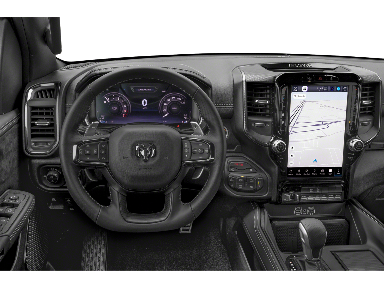 10 Speakers, 12-Way/1-Way Trailer Connector, 14.4 Touchscreen Display, 240 Amp Alternator, 4G LTE Wi-Fi Hot Spot, AM/FM radio, Connected Travel and Traffic Services, Connectivity - US/Canada, Disassociated Touchscreen Display, Driver Power Seat Back Massage, Driver Seat Memory, Driver/Passenger Wrapped Assist Handles, Drowsy Driver Detection, Dual Wireless Charging Pad, Evasive Steer Assist, Exterior Mirrors with Memory, Front Passenger Interactive Display, Front Passenger Power Seat Back Massage, Full Length Premium Upgraded Floor Console, GPS Navigation, Hands-Free Active Driving Assist System, Harman/Kardon 19 Speaker Premium Sound, HD Radio, Heads-Up Display, Heated Second Row Seats, Integrated Center Stack Radio, Integrated Voice Command with Bluetooth®, Intersection Collision Assist System, Leather/Carbon Flat-Bottom Steering Wheel, LED CHMSL Lamp, Luxury Front Door Trim Panel, Navigation System, Power Adjustable Pedals with Memory, Power Tailgate, Premium Wrapped Instrument Panel Bezel, Quick Order Package 22Y RHO, Radio data system, Radio: Uconnect 5 Nav with 14.4 Display, Radio/Driver Seat/Mirrors/Pedals Memory, Rain Sensitive Windshield Wipers, Real Carbon Fiber Interior Accents, Rear 60/40 Folding Split Recline Seat, RHO Level 1 Equipment Group, SiriusXM Radio Service, Smartphone as a Key Capable, Surround View Camera System, Traffic Sign Recognition, Trailer Reverse Steering Control, Trailer Tire Pressure Monitoring System, Trailer Tow Group, USB Host Flip, Ventilated Front Seats, Ventilated Rear Seats.