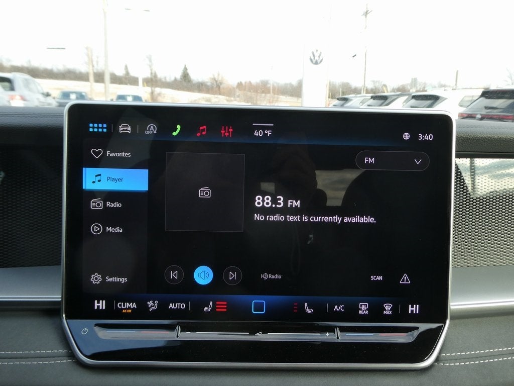 - MIB4 Composition Media Touchscreen w/AM/FM Radio -inc: WMA/MP3/FLAC player w/USB, 12.9" touchscreen multi-function center display w/backlit sliders, voice control, 6 speakers + center speaker (7 speakers total) sound system, capability for in-vehicle 4G LTE enabled Wi-Fi (cellular data plan required; includes limited trial), capability for connected vehicle services (capabilities for services vary; requires enrollment or subscription), Bluetooth® connectivity (for compatible devices), SiriusXM w/360L (w/3-month free trial subscription; 360L services require acceptance of Car-Net terms), App-Connect smartphone integration (w/Apple CarPlay, Android Auto and MirrorLink) via USB, wireless App-Connect smartphone integration (for compatible devices) w/multi-phone pairing capability, 45W fast charging (for compatible mobile phones and accessories) via USB in both rows and Qi wireless inductive charger, cooled, up to 15W (for compatible mobile phones and accessories) All connected vehicle services are subject to terms and limitations. Some services require a paid subscription. See dealer or vw.com/connected for important details.