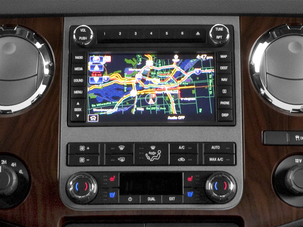 - SYNC w/MyFord Touch & SYNC Services -inc: 911 assist, vehicle health report (VHR), traffic, directions and information services, 1 USB port, AppLink, integrated 8" LCD touch-screen in center stack, IP mounted inverter (110v/150w) upper closable media hub w/2 USB ports, audio/video input jacks, SD card reader, 12 volt powerpoint and 4.2" LCD productivity screen w/compass and menus for gauge setup, trip computer, fuel economy and towing/off-road applications (5 button message control on steering wheel), SYNC Services include traffic, turn-by-turn directions, business search, send to SYNC from MapQuest, news, sports, weather and horoscopes, NOTE: SYNC Services receives a complimentary 1 year prepaid subscription and 20 operator assist sessions