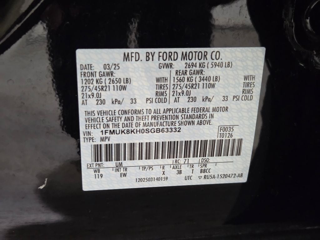 Slip into the Heated Unique Cloth Captain's Chairs and let the available Heated Steering Wheel warm your hands on chilly days. The intuitive SYNC 4 infotainment system, complete with Apple CarPlay and Android Auto integration, keeps you seamlessly connected. Meanwhile, the Rear View Camera and Parking Sensors make navigating tight spaces a breeze.